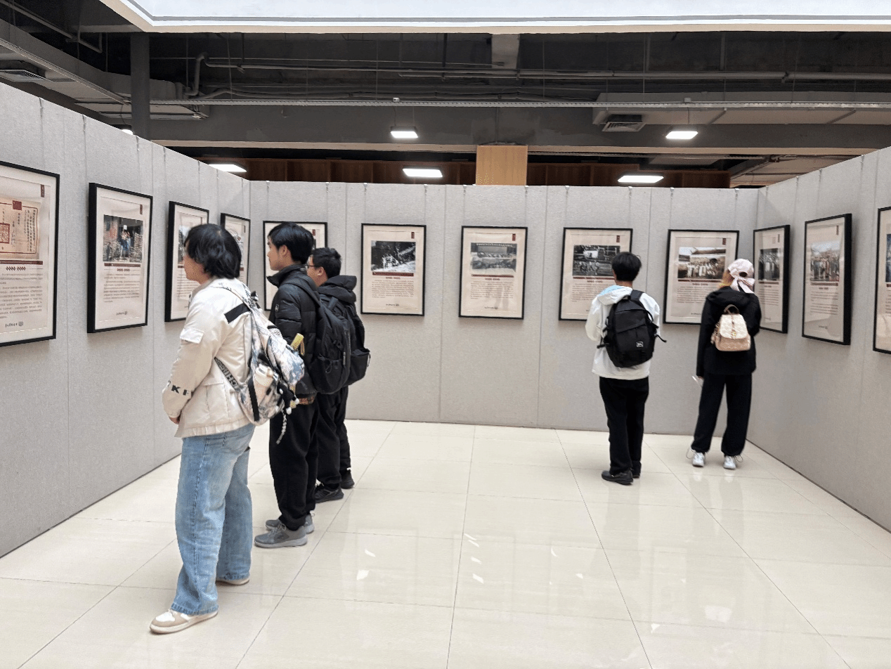 观展过程中,师生们缓步前行,仔细研读史料,在一幅幅定格历史的影像前驻足沉思。从青年茅以升立志造桥、攻克工程难题的执着,到他坚守家国大义、舍小我为大我的担当;从深耕讲台、桃李满天下的师者风范,到晚年潜心科普、点亮科学火种的坚守,每一段历史、每一份资料,都让在场师生深受触动。同学们结合《架桥者茅以升》课程所学知识,对照展览内容交流探讨,进一步加深了对茅以升先生精神内核的理解,真切体会到老一辈科学家心系家国、勇攀高峰、甘为人梯的崇高品格。
