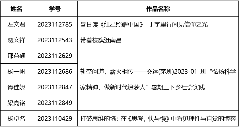 “2025行知中国的茅院人”(暑假版)暑期实践风采展示征文活动是由茅以升学院(唐臣书院)举办的,旨在展示同学们丰富多彩的暑期生活,鼓励同学们大兴调研之风,面向社会,走进基层,走近群众,在调研行动中感知中国。截止征文活动结束,收到多篇征文,经过初选评审,现将奖励名单公示如下: