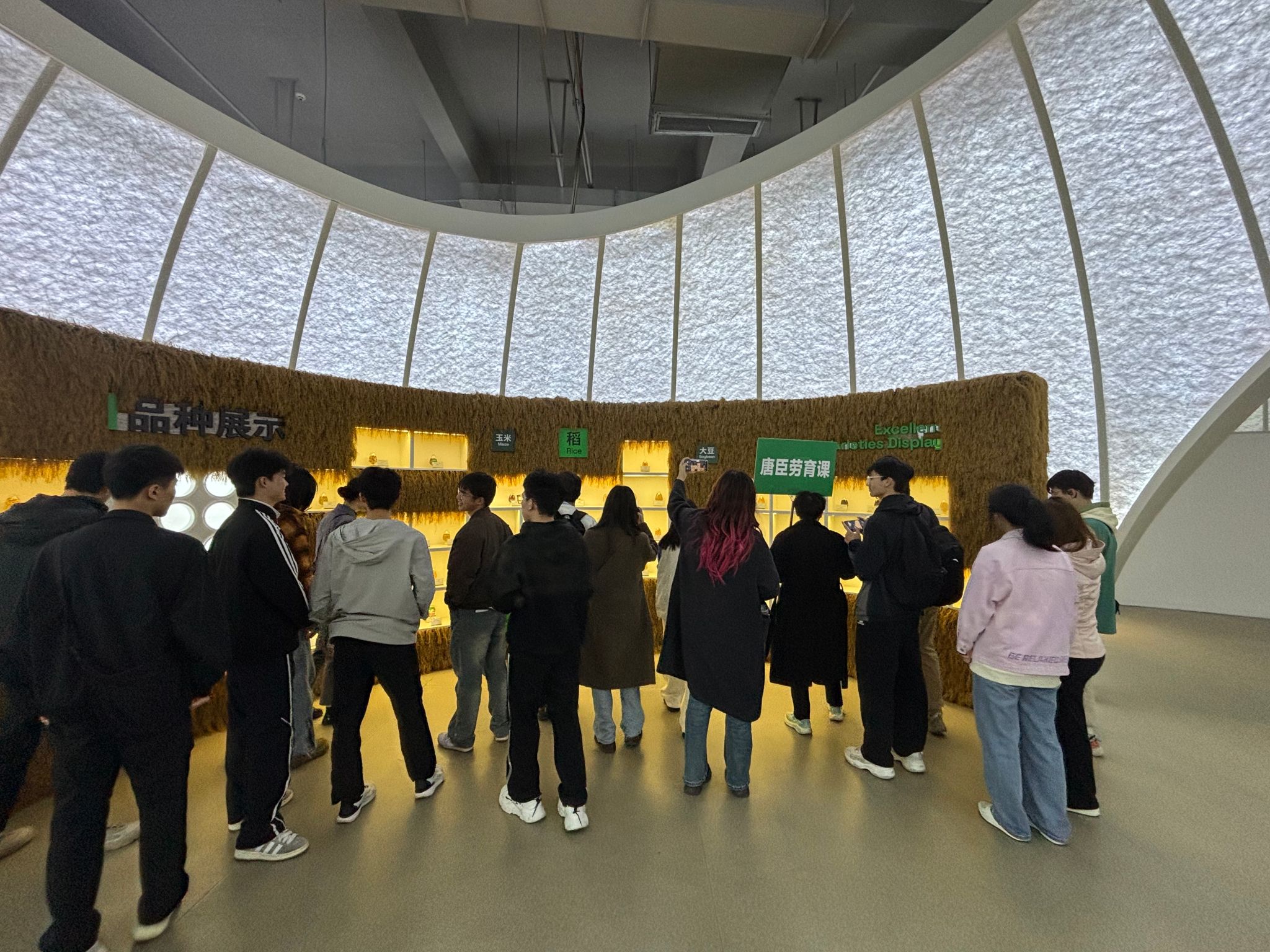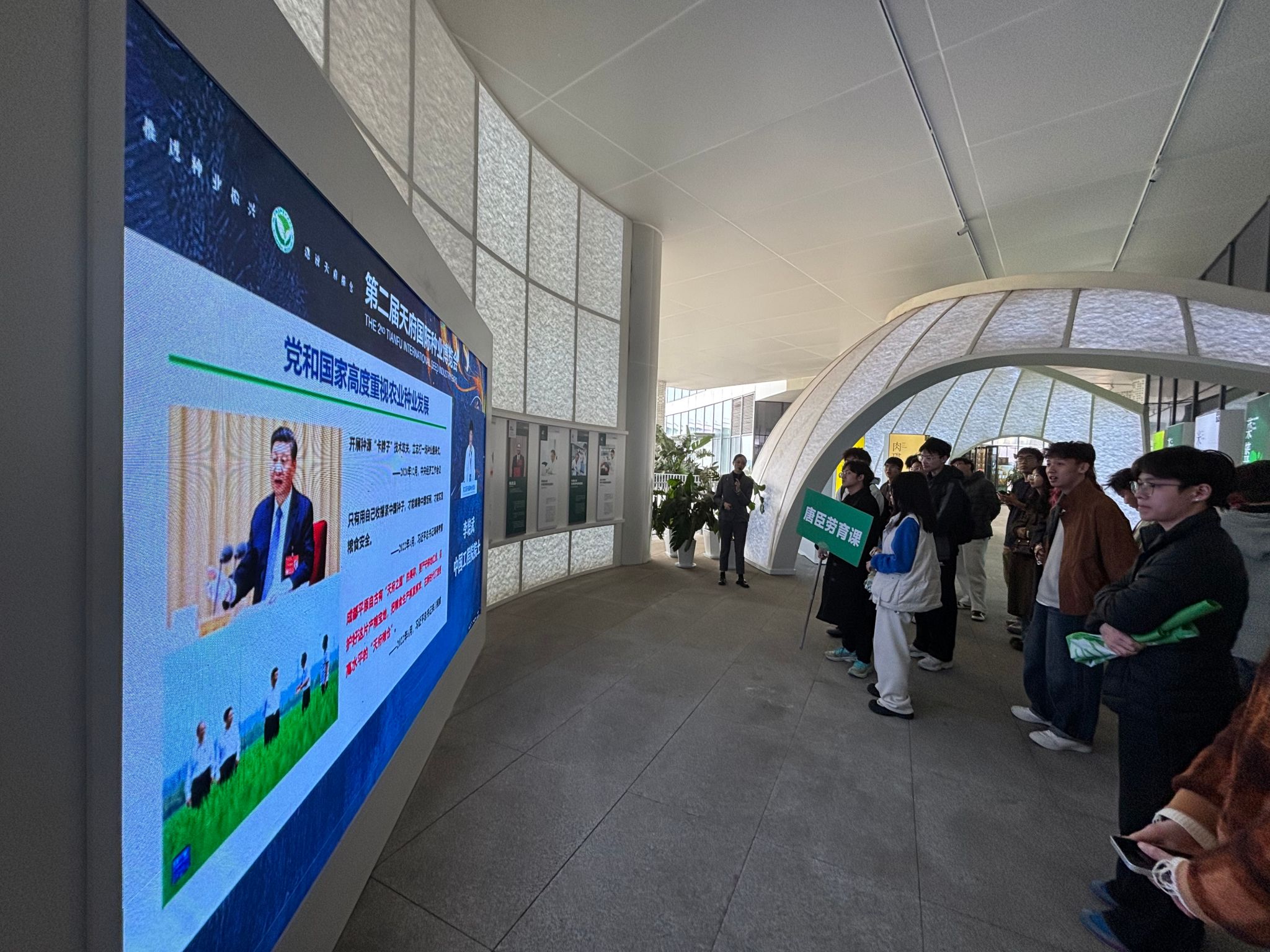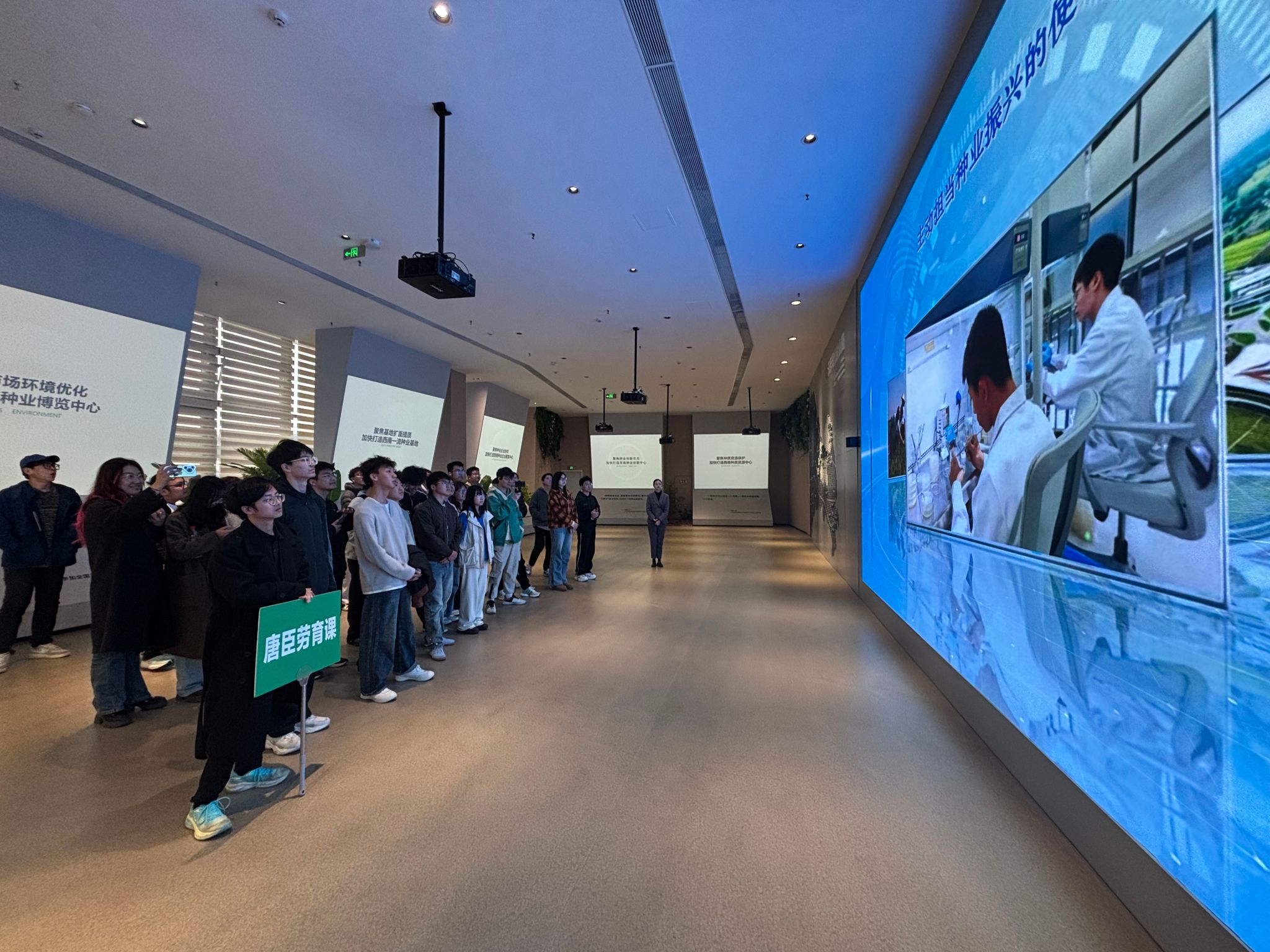 万物共生厅内,通过观看园区宣传片,师生们系统学习了园区整体布局、未来发展规划以及为推动种业振兴实施的五大行动,对园区的战略定位有了清晰认知;